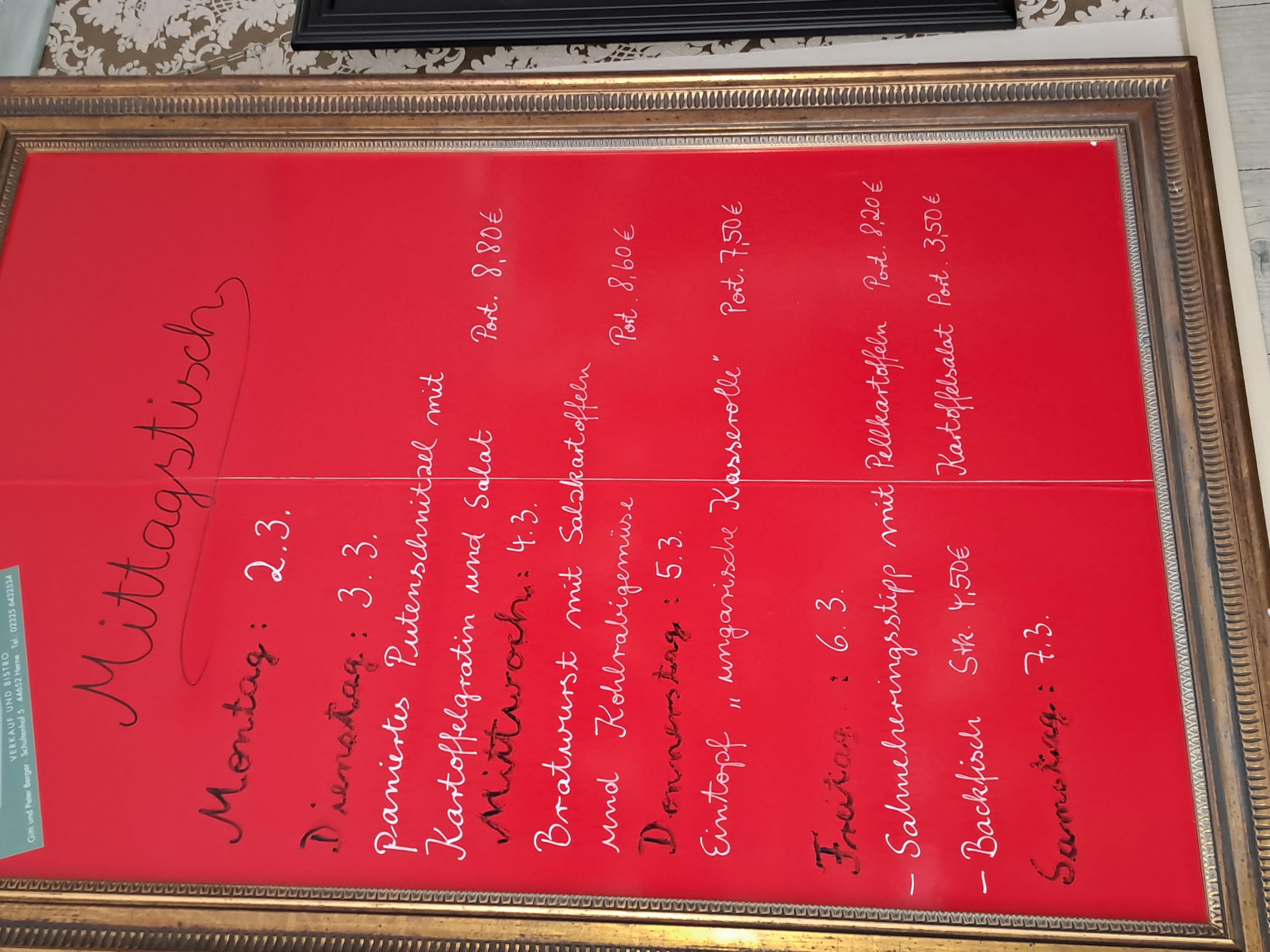 Freitags gibt es ein wechselndes Fischgericht und den beliebten Backfisch mit Kartoffelsalat oder Bratkartoffeln